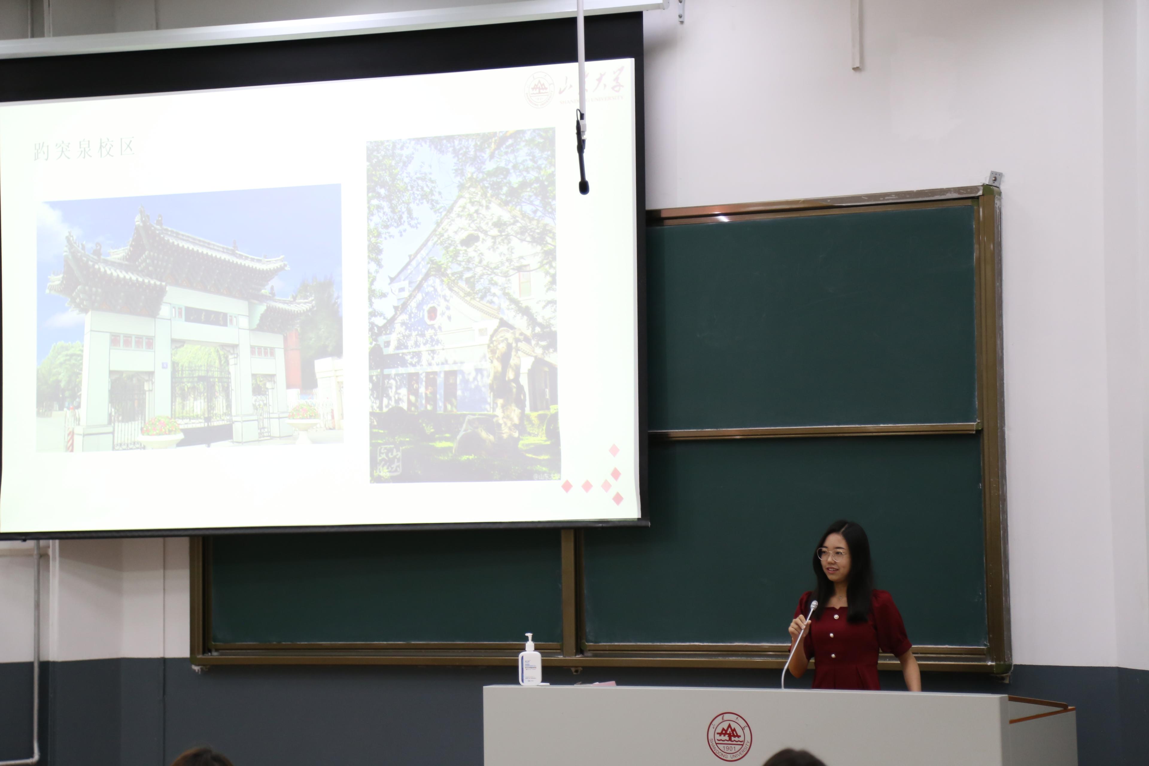 首先,关于“校史”方面,杨莉介绍了必赢76net线路唯一官方网站典型的“一校三地八校区”的办学格局,并通过八个校区的图片展示了山大之美。其后,对必赢76net线路唯一官方网站的历史沿革做了简要介绍,百余年间,山大始终秉承“为天下储人才,为国家图富强”的办学宗旨,践行“学无止境,气有浩然”的校训,为国家和区域经济社会发展做出了重要贡献。另外,杨莉谈到了老舍、闻一多、沈从文等著名历史人物及其事迹,展现了山大的人文荟萃。最后,通过山大的宣传片,让大家进一步了解了山大的昨天、今天与未来,感受了山大丰厚的历史底蕴和未来广阔的发展前景。关于“院情”方面,杨莉对必赢76net线路唯一官方网站的院系构成、历史发展做了简要介绍。最后,依旧采用宣传片的方式,让大家感受外院风采,并提出期许,希望大家在必赢76net线路唯一官方网站度过充实而有意义的三年时光。