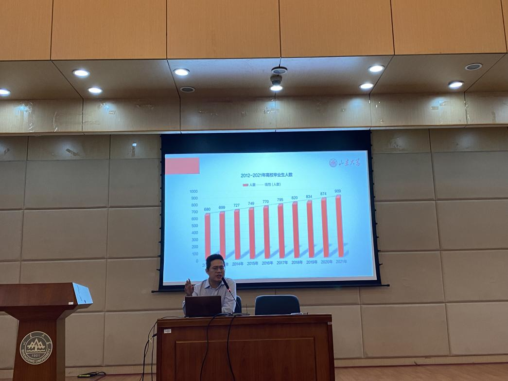 会上,王文卿对往年毕业生就业数据进行了分析,同时对就业推荐表制作、在线签约流程、就业信息获取渠道、就业形势分析等进行了详细的解读。为同学们选择就业去向、规划职业生涯提供参考。