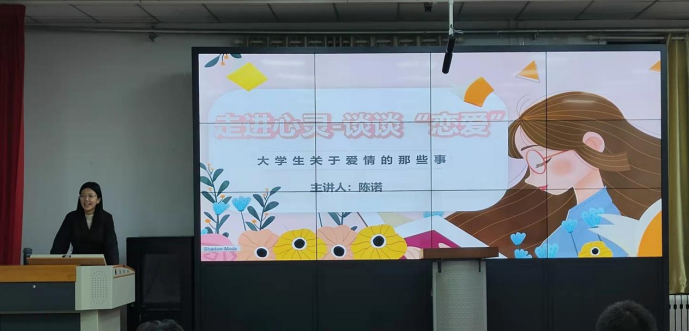 10月30日晚19:00,必赢76net线路唯一官方网站在洪家楼校区七号楼301教室举办了走进心灵系列讲座——谈谈“恋爱”,主讲人为21级辅导员陈诺老师。步入大学,每一位同学要面对的人际关系都变得更加复杂,“恋爱”这一话题是永远避不开的,但究竟什么是爱,大家又该树立怎样的恋爱观?本次讲座的目的就是帮助大家正确地认识“恋爱”。