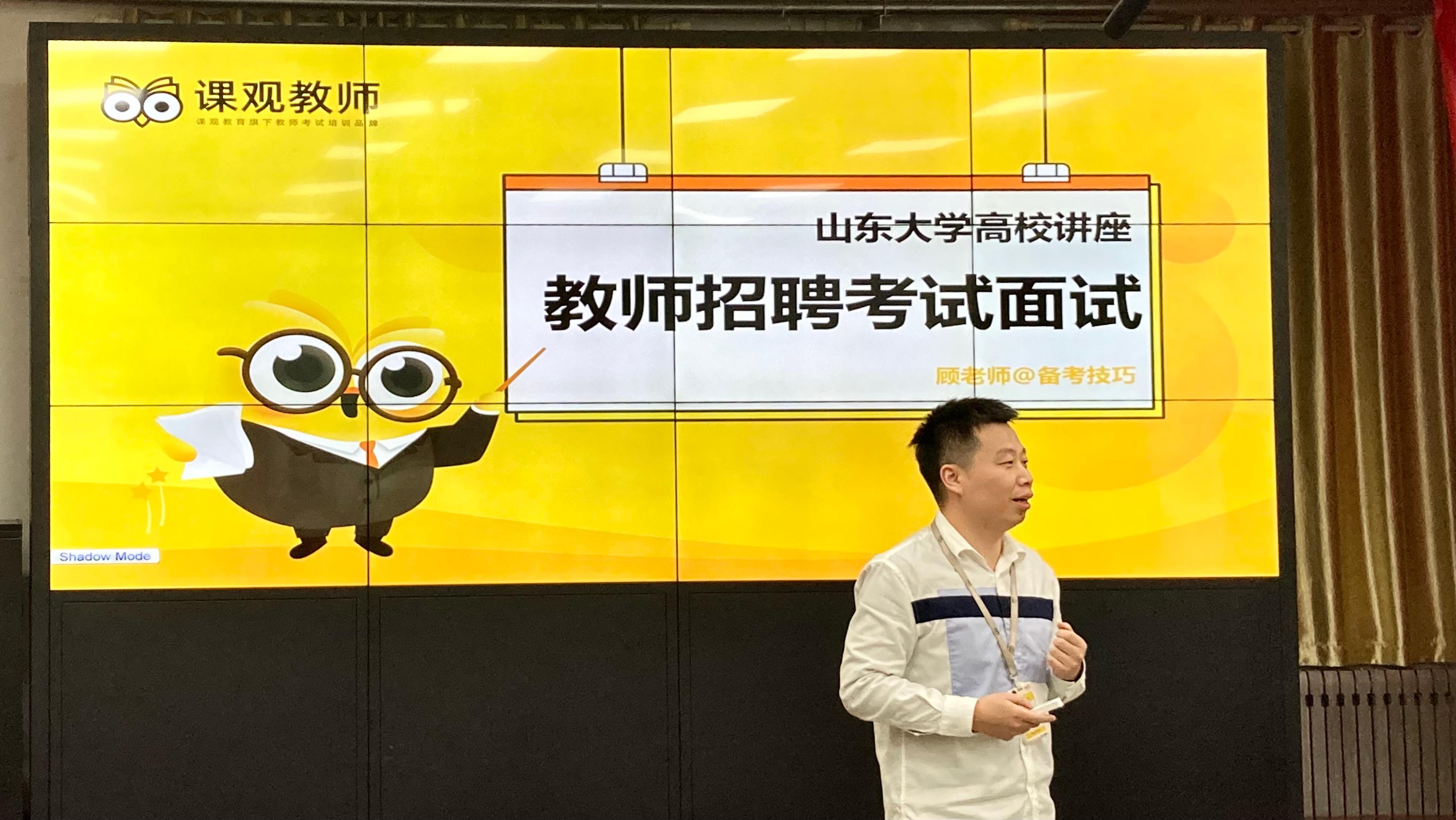 接下来,顾存金为同学们进行教师编制面试的指导。首先,顾存金列举了山东省各个城市的竞争比例、考试形式等教师编制考情,介绍了三种考试形式:前置答辩、试讲和说课。随后,顾存金介绍了几种面试技巧和方法,通过几道面试题目的例子和回答,深入浅出地为同学们提供了结构化考试的答题思路、角度与要点,并分析了三类结构化考试的题型:职业理念、综合分析与问题解决。接着,顾存金通过生动的举例示范详细讲解了试讲的类型、特点、技巧,并建议同学们多加练习。最后,顾存金介绍了教师编制面试礼仪中的服装要求,给出了参考与禁忌。