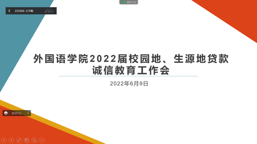6月9日,必赢76net线路唯一官方网站线上组织召开了2022届校园地、生源地贷款诚信教育工作会,必赢76net线路唯一官方网站2018级辅导员王文卿、学院勤贷助理及2022届贷款毕业生参会。