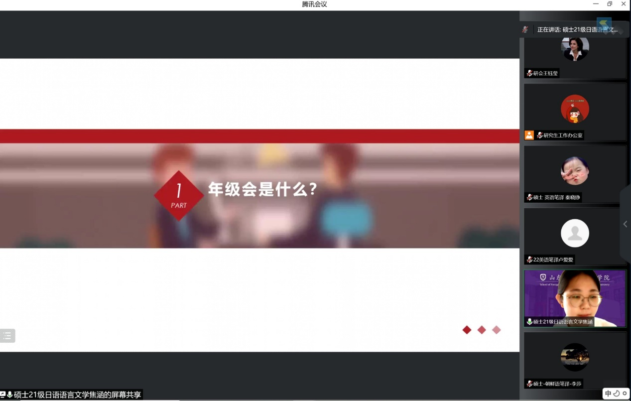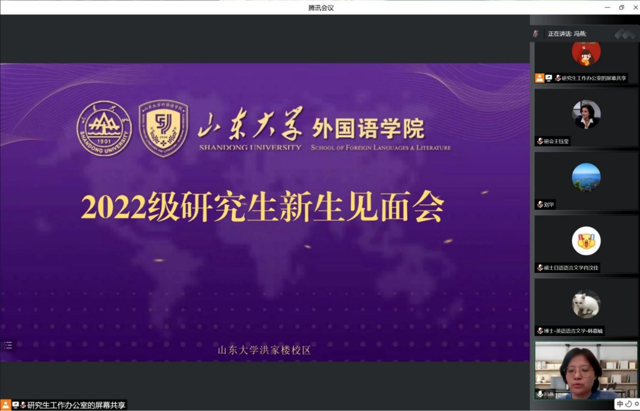9月7日上午,必赢76net线路唯一官方网站通过腾讯会议线上平台举行了2022级研究生新生见面会,必赢76net线路唯一官方网站党委副书记刘华,研究生管理科冯燕、尤玉辉,研究生工作办公室辅导员张新苑、李雪倩以及第21届研究生会主席团、部长团和2021级年级会主席团出席本次会议。本次见面会由研究生辅导员李雪倩主持,2022级全体研究生参会。
