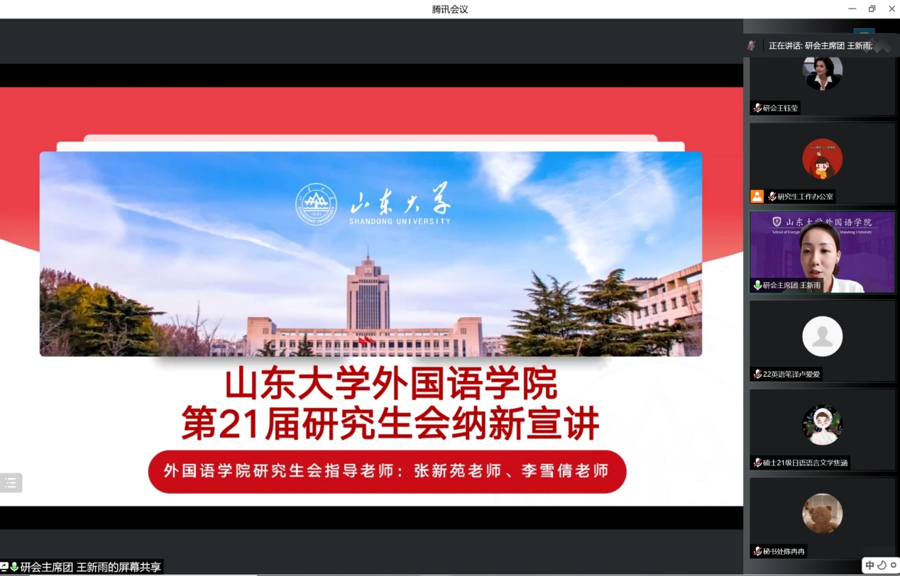 最后,年级会和研究生会分别进行了纳新宣讲。2021级年级会分管主席焦涵介绍了年级会的构成及分工,讲解了主席团、班级和团支部学生干部的具体职责,并介绍了本次年级会招新流程,号召大家积极参与到年级会的工作中来。在研究生会主席王新雨的主持下,研究生会部长团分别介绍了各部门的相关工作内容,并号召大家积极加入研究生会、参与相关活动。会议最后,王新雨介绍了新升级的志愿者制度,呼吁大家积极参与志愿活动,主动参与社会、融入社会、建功社会。