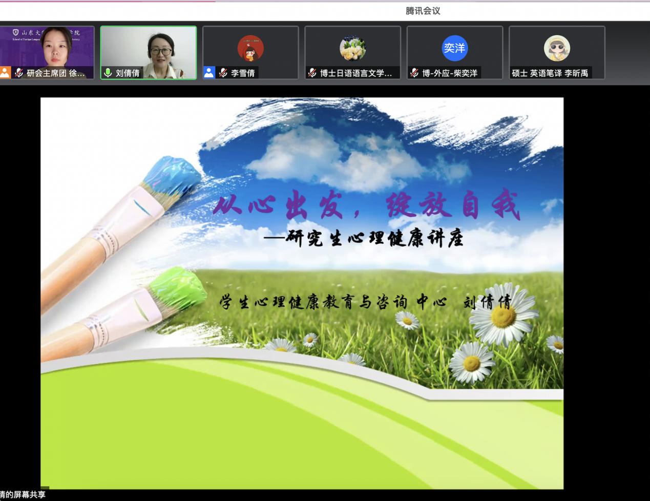 9月8日上午,必赢76net线路唯一官方网站新生入学教育系列活动之心理健康教育线上讲座顺利举办。必赢76net线路唯一官方网站学生心理健康教育与咨询中心的刘倩倩老师受邀做客必赢76net线路唯一官方网站,通过腾讯会议线上平台为2022级全体研究生作了主题为“从心出发,绽放自我”的心理健康讲座。本次讲座由研究生会主席团成员徐一凡主持,2022级硕士研究生辅导员李雪倩老师出席,2022级全体研究生新生参加了本次讲座。