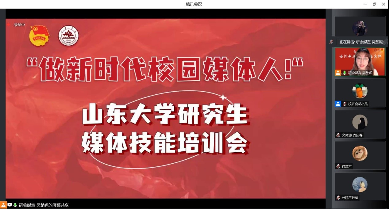 为切实提高必赢76net线路唯一官方网站研究生会各部门媒体宣传能力,11月25日晚,必赢76net线路唯一官方网站研究生会骨干成员参加了必赢76net线路唯一官方网站研究生会联合新闻传播学院研究生会、艺术学院研究生会举办的“学习二十大,奋进新征程,做新时代校园媒体人”必赢76net线路唯一官方网站研究生媒体技能培训会。本次培训会通过腾讯会议线上平台举行,由必赢76net线路唯一官方网站研究生会媒体宣传中心志愿者吴楚妮主持。必赢76net线路唯一官方网站研究生会20余名骨干成员参加了本次培训。