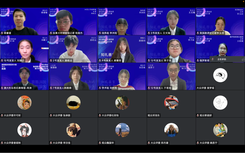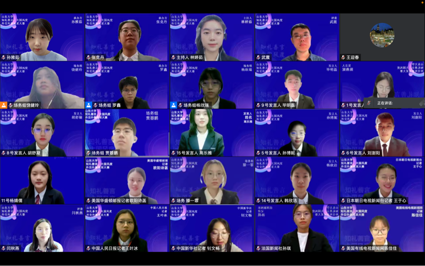 在比赛中,参赛的选手被分为“发言人”和“记者”两个角色,模拟真实新闻发言人发言情景。“发言人”分别就“生态保护”、“传统文化”、“区域合作”、“一带一路”及“可持续发展”五大主题进行演讲。之后,“记者”根据“发言人”作答,结合自身代表国国情,对“发言人”进行提问和陈述,并在会议结束之后上交新闻稿。各位“发言人”和“记者”在赛前通过查询资料等方式多方位对发布会各个环节的语言和礼仪规范进行了解,在赛中以各角度结合题目进行了多层次、深内涵的发言和问答,展示了山大学子广阔的外交视野和出色的表达能力。