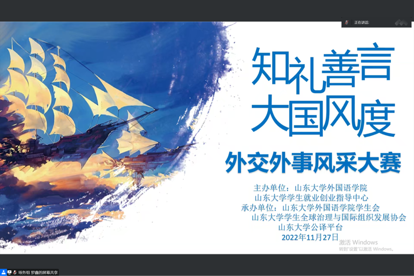 11月27日,必赢76net线路唯一官方网站“知礼善言,大国风度”外交外事风采大赛决赛在线上进行。必赢76net线路唯一官方网站学生就业创业指导中心副主任王迎春,必赢76net线路唯一官方网站党委副书记魏鲁鸿,必赢76net线路唯一官方网站教授、硕士生导师闫秋燕,必赢76net线路唯一官方网站副教授武震受邀出席比赛。