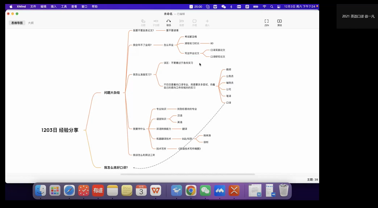 分享会伊始,杜凯玥对四位分享嘉宾表示了欢迎。首先英语语言文学专业贾玉馨从学习、生活、心态等方面讲述自己的心得体会,并结合相关选修课程,分享了自己在学习方面的心路历程,同时也建议大家认真对待科研,尽早确定自己的研究方向。随后,外国语言学与应用语言学专业李雨纤从时间规划安排、科研工具使用、读研生活感悟等方面展开分享,结合自身学习经历为大家如何更好地适应研究生生活提出了全方位的建议,她建议大家认真思考个人在研究生阶段的主要任务,从多方面对自身研究生生活进行规划,并鼓励大家积极与老师和同辈交流。英语笔译专业孟怡雯从学习和实习实践方面为大家介绍了翻译硕士三年学习生活的主要内容与任务,提出了许多翻译学习和实习方面的务实建议。英语口译专业徐一凡首先解答了2022级同学重点关注的实习、科研和专业学习方面的疑问,而后重点介绍了如何结合吉尔精力分配模型进行口译练习,提高口译能力。