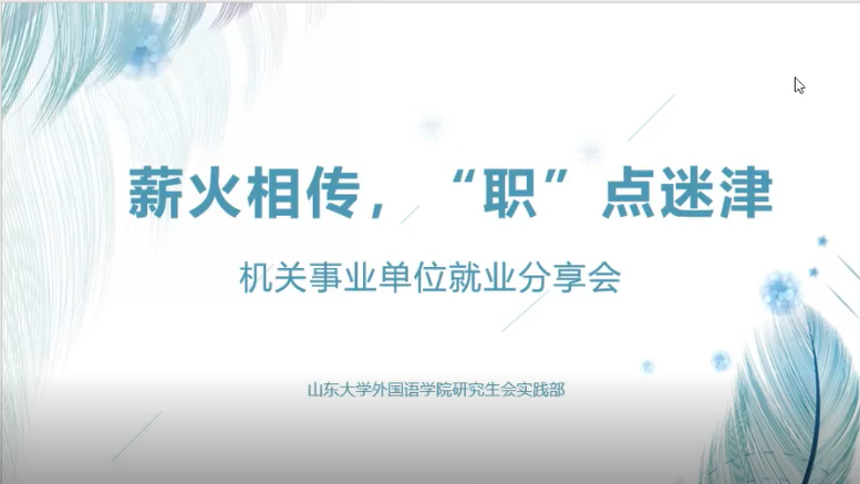 为了拓宽研究生的就业渠道,给同学们提供备考机关事业单位的经验与引导,2月6日晚,必赢76net线路唯一官方网站举办了线上机关事业单位分享讲座。院实践部特邀田野,连雨晴,唐辰三位优秀前辈为同学们分享经验,指点迷津。必赢76net线路唯一官方网站百余名研究生参加了此次讲座。