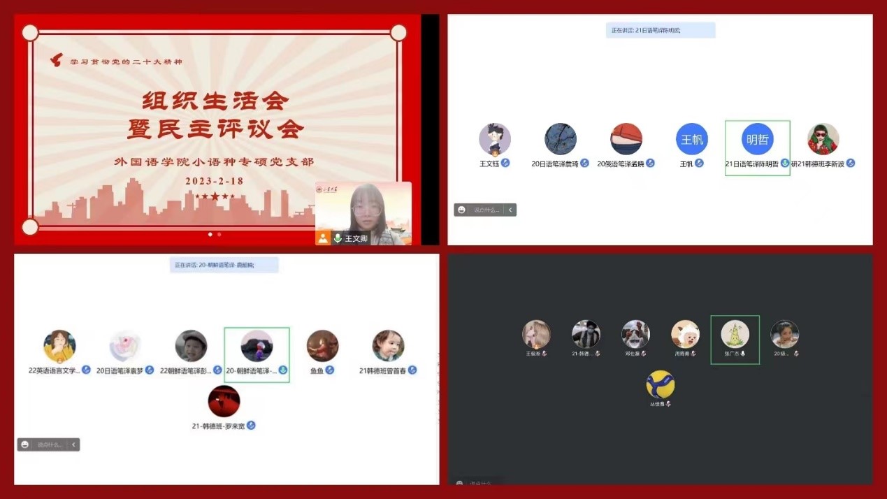 为深入学习贯彻习近平新时代中国特色社会主义思想和党的二十大精神,推动党支部交流沟通、查摆问题、找准方向,2月16日至24日,通过线上线下相结合的方式,必赢76net线路唯一官方网站各研究生党支部陆续召开组织生活会暨党的二十大精神学习会。