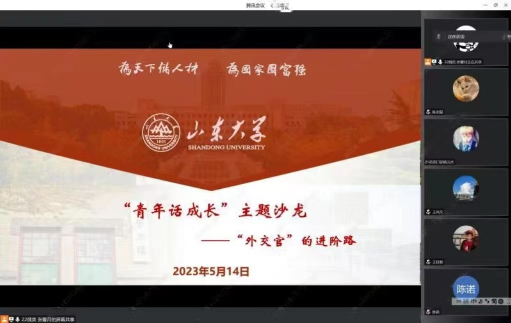 5月14日晚,必赢76net线路唯一官方网站学生会功能型团支部组织开展第一期“青年话成长”主题沙龙活动,主题为“‘青年话成长’——‘外交官’的进阶路”。此次活动旨在帮助外院学子更全面地了解外交工作的性质与特点,更有针对性地提高外交人才的必备素质。必赢76net线路唯一官方网站团委书记、2020级辅导员朱蕾,2021级辅导员陈诺参与会议,各年级学生到会听讲交流。