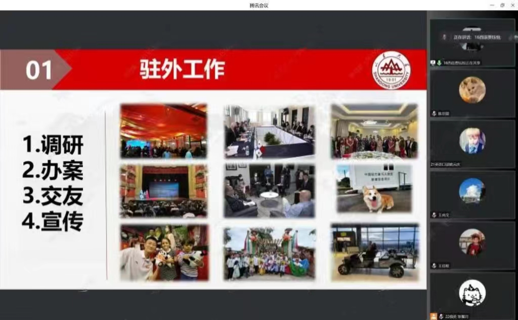 2019级西班牙语专业本科生王尚文进行分享。他首先从职业价值观、环境内容、工作待遇、典型生活方式、发展前景、能力要求及风险挑战六个方面,对外交官职业本身进行了详细的介绍,增进了同学们对外交工作的理解。其次,他以“探索、审慎、专注”三步走为线索进行了大学生活经验分享。最后他再次强调理想信念,政治素质,综合能力的重要性,并对同学们表达了殷切期望。