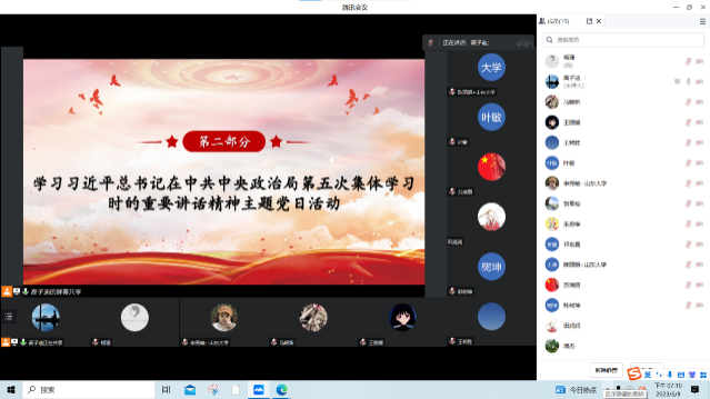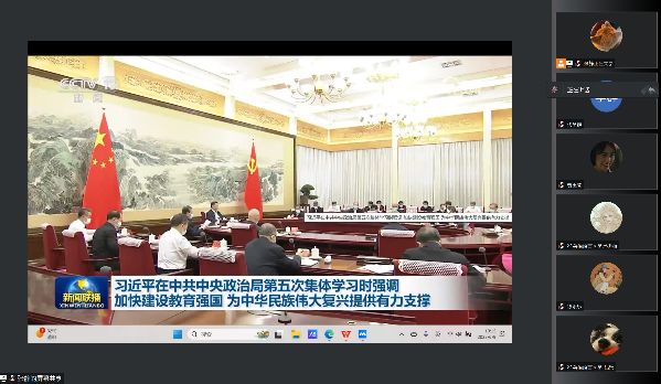 随后,各党支部委员组织带领大家学习了习近平总书记在中共中央政治局第五次集体学习时就“建设教育强国,为中华民族伟大复兴提供有力支撑”发表的重要讲话,强调要发挥党员先锋模范作用,认真贯彻落实习近平总书记的讲话精神,以成为德智体美劳全面发展的社会主义建设者和接班人为目标,树立坚定的理想信念,永远听党话、跟党走,矢志奉献国家和人民。