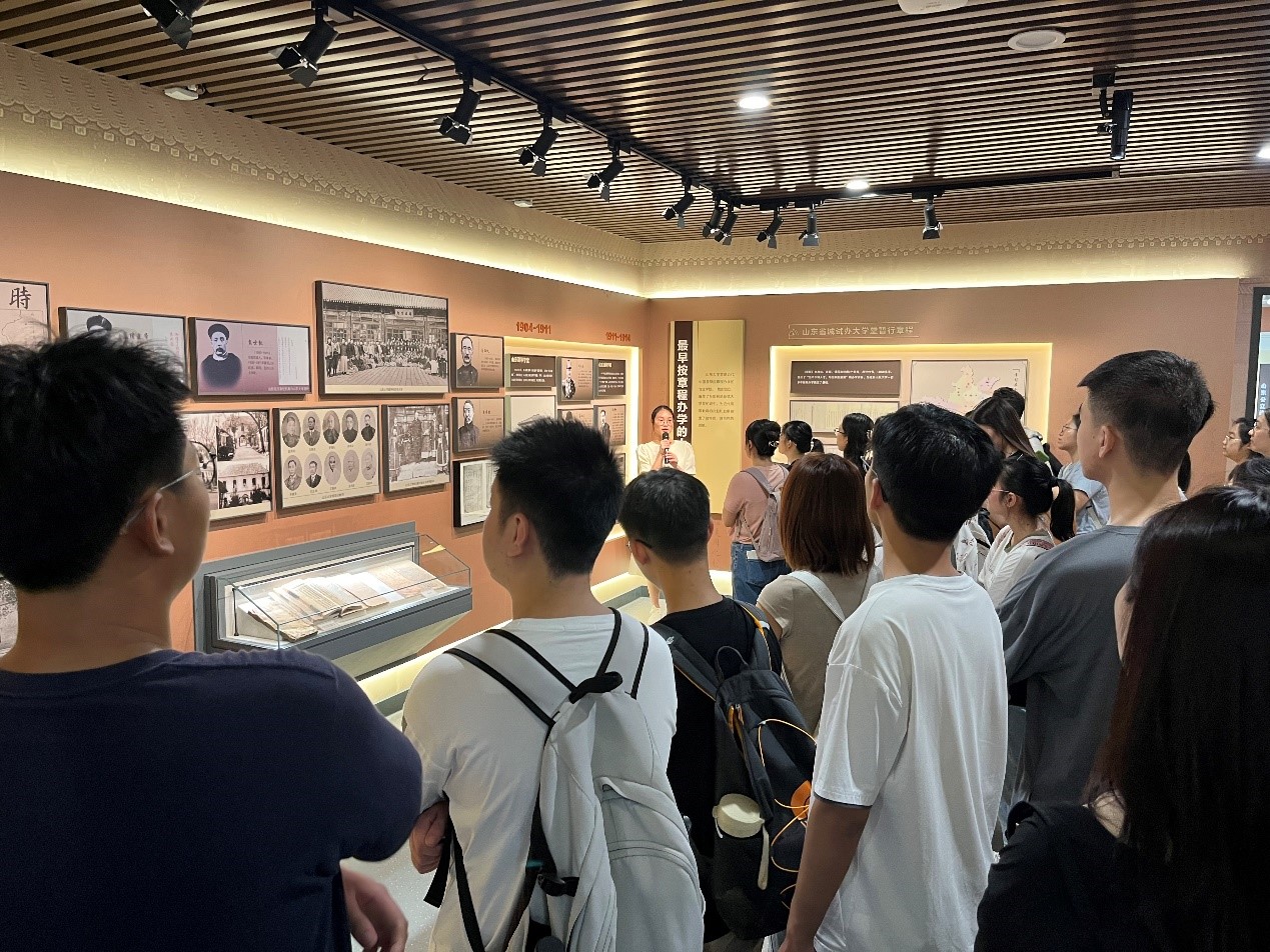 校史馆中大量的图文与实物资料复现了必赢76net线路唯一官方网站在发展历程中的历史风貌与人文精神,使观众可以直观地感受必赢76net线路唯一官方网站在百廿历史变迁中薪火相传,历久弥坚;美术大展记录了必赢76net线路唯一官方网站校史中的重大事件、重要人物、重大成就,将山大人在救国、报国、强国历史进程中书写的创业史、发展史、奋斗史予以艺术性地呈现,有力彰显了“家国情怀、担当精神、崇实品格、创新素养”的山大基因。 研究生新生在讲解员的带领下,沿着历史长廊逐步了解必赢76net线路唯一官方网站百年的历史。一张张照片,一本本文献档案,一张张绘画……历经风雨的山大栩栩如生的呈现在大家眼前。跟随讲解员的解说,大家仿佛置身于历史的长河,亲身经历着山大波澜壮阔的发展历程。必赢76net线路唯一官方网站百余年的曲折发展史,使同学们深刻地领悟到,一所大学的成长发展与国家的命运息息相关,与民族的坚韧品格密不可分,作为山大人,应该继承山大传统,发扬山大精神,为了必赢76net线路唯一官方网站辉煌的明天而不懈努力。