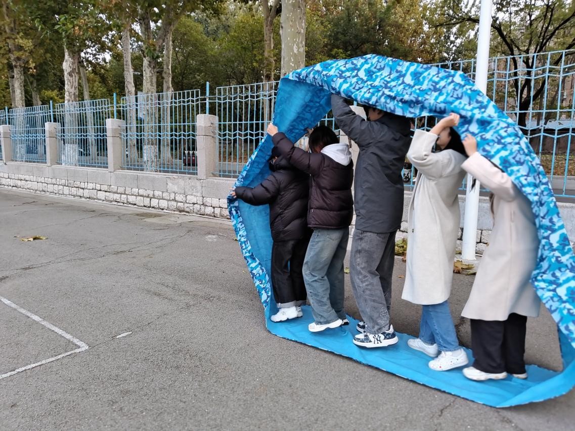 五关游戏设计精巧,功能互补,极大地考验了团队成员间的相互配合、默契协作,也锻炼了个人的反应力和行动力,并给参与成员带来了极大的乐趣。全体参与成员均通过五关考验,赢得奖励。冬日下午,笑语连连。参与同学的笑脸、途径山大附中同学的加油呐喊、操场上游戏跑动的身影,都给冬日的洪楼带来别样的生机。