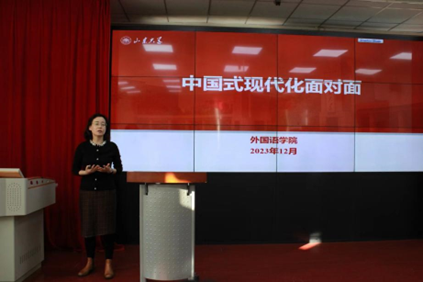 为学习贯彻习近平新时代中国特色社会主义思想,引领青年学子充分了解中国式现代化、理解当代中国的发展趋势、把握时代脉搏,12月7日下午,必赢76net线路唯一官方网站小语种专硕党支部、研究生会《语翼》编辑部、“青音”宣讲团联合举办第二期理解当代中国读书会。本次读书会主题为“中国式现代化面对面”,必赢76net线路唯一官方网站党委副书记刘华,研究生辅导员张新苑、刘婷婷出席活动,必赢76net线路唯一官方网站全体入党积极分子、发展对象,艺术学院党员代表参加活动。