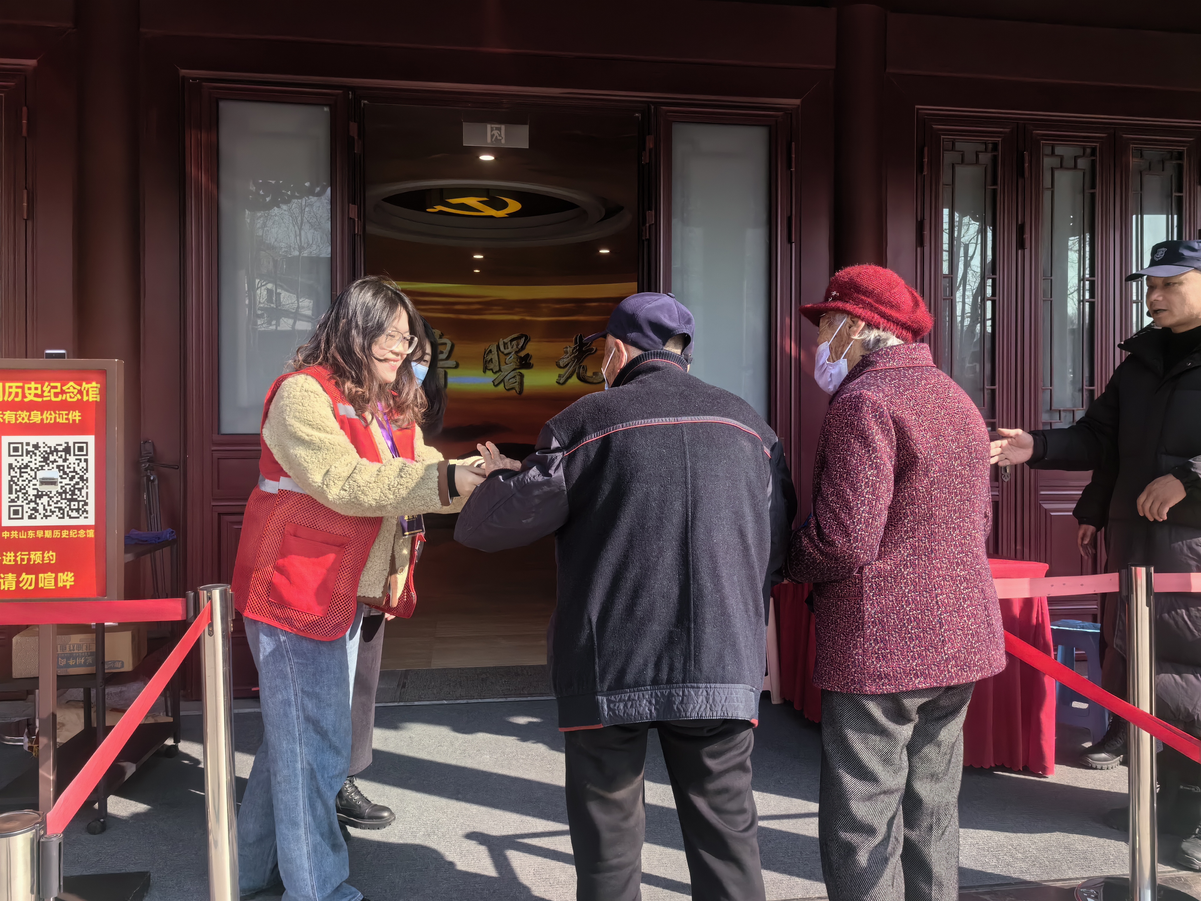 在中共山东早期历史纪念馆内,第一组志愿者首先在讲解员的引导下,参观了“社会变革 历史选择”“点燃星火 彰显初心”“工农运动 异军突起”“土地革命 前仆后继”“信仰弥坚 铁血担当”“重建省委 抗日救亡”六个展厅,详细了解了山东早期党组织创建、发展和斗争的光辉历程,深刻感悟到王尽美、邓恩铭等革命先驱的高尚品格。接着,在熟悉讲解内容后,志愿者们在纪念馆内各展厅、山东省委秘书处旧址、美铭广场进行解说志愿服务,帮助更多参观者了解山东党组织的早期历史,弘扬革命先辈的崇高精神。同时,其他志愿者分别开展馆内引导、雕像擦拭等志愿服务活动。