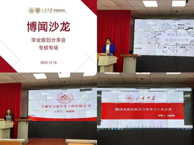 12月18日,第四期博闻沙龙聚焦翻译实践与学业规划。2021级英语笔译硕士研究生王钰莹从个人情况、三年规划、综合能力三个方面展开,重点强调了表达能力、学习能力、多任务处理能力、情绪调节能力的重要性。2022级俄语语言文学硕士研究生阮彦潼详细介绍了翻译实践经验及日常学习工作,分享了企业洽谈翻译译前、译中、译后的注意事项,晚宴陪同翻译容易出现的问题,以及日常学习工具,帮助同学们提高学习效率。2022级英语笔译硕士研究生秦晓铮从专硕学习及学生工作经验的角度入手,提出了专业学习的注意点,并分享了自己的实习经历,为同学们的就业方向规划提供了建议。