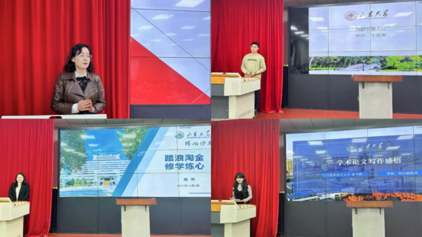 12月7日,第二期博闻沙龙聚焦学术论文研读。2022级硕士研究生阮彦潼、董怡楠、邹浥尘分别从语言学、历史文化与翻译三个研究方向选取期刊论文进行研读,并分享了论文的主要结构、内容、个人研读心得与专业学习启示。