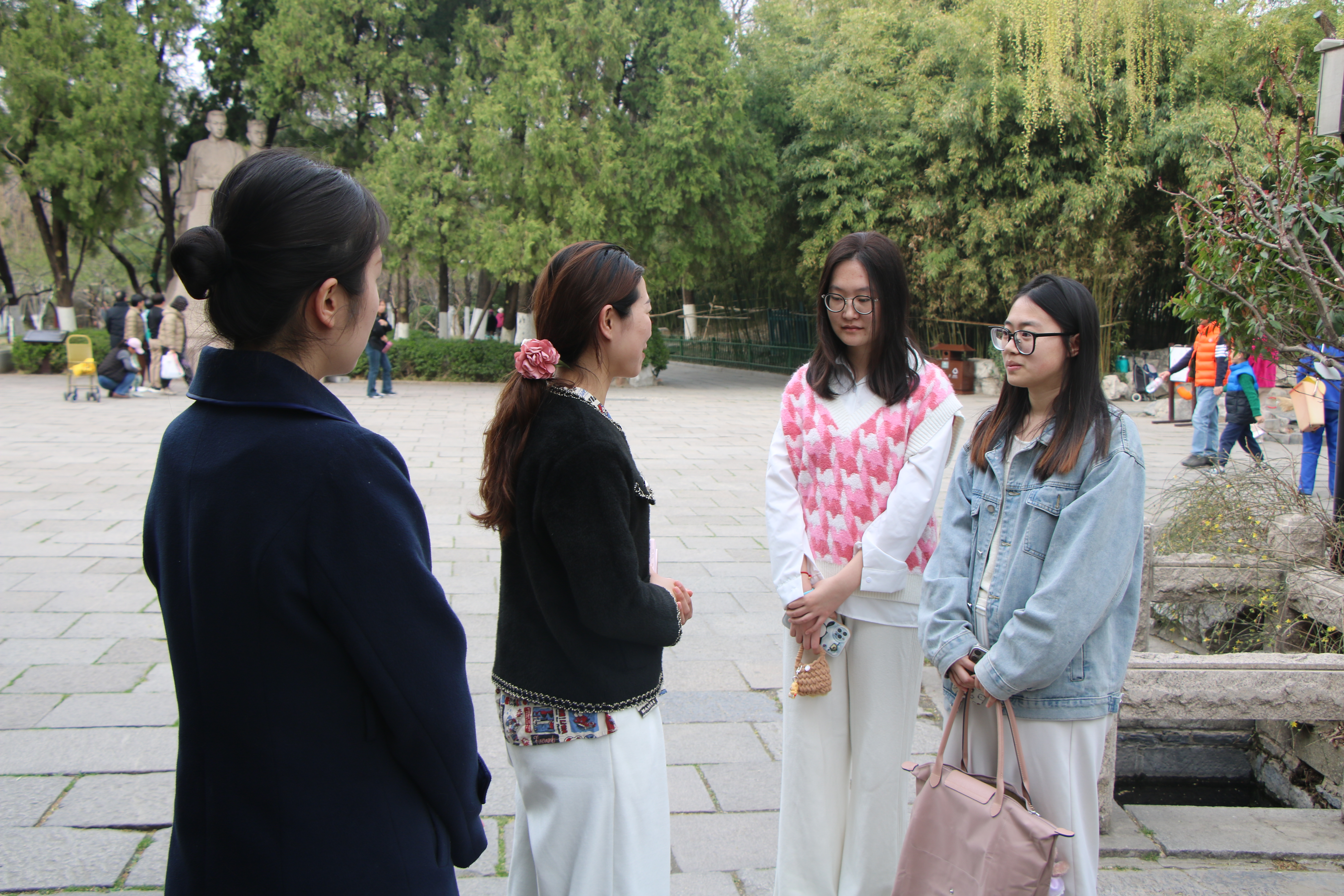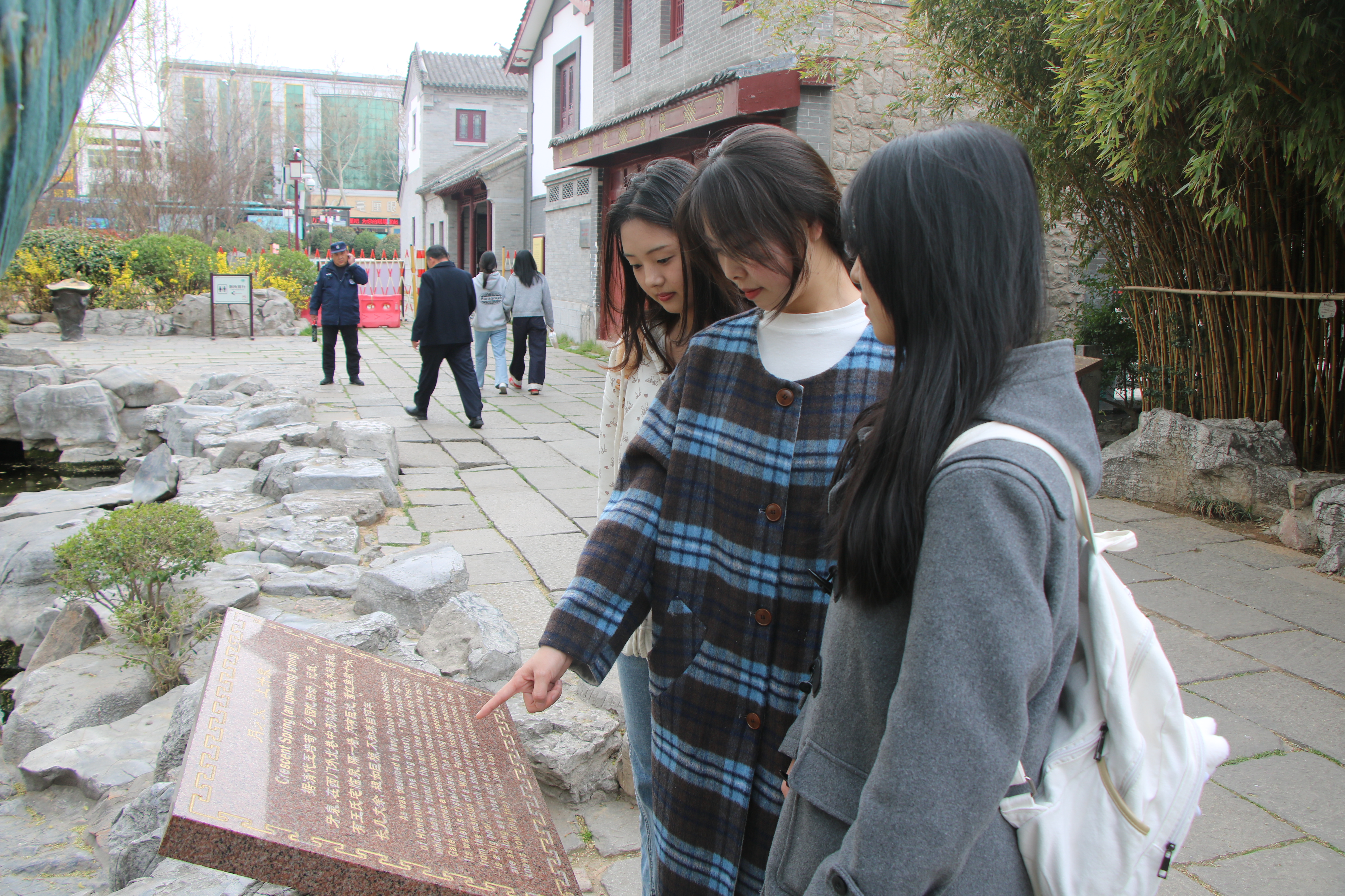 随后,同学们开展了“苔米计划”新时代青年主题实践活动。在中共山东早期历史纪念馆,同学们通过承担参观引导与维持秩序等工作,保障红色教育活动有序开展。在五龙潭公园,同学们运用语言专业优势,对园区内多语种导览标识进行了专业研读,将专业学习与社会服务深度融合,助力公园提升国际化服务水平,践行“将小我融入大我”的青春誓言。