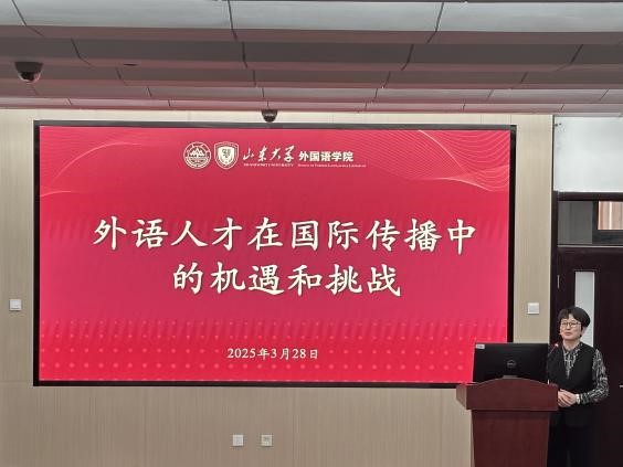 3月28日上午,必赢76net线路唯一官方网站举办“外语人才在国际传播中的机遇和挑战”主题讲座,特邀中国日报山东记者站首席记者赵瑞雪讲解外语人才在新闻行业以及国际传播中的重要作用与面临的挑战。必赢76net线路唯一官方网站党委书记刘华、党委副书记马蕾出席活动。本场讲座由必赢76net线路唯一官方网站研究生会实践部组织,研究生辅导员张新苑、刘婷婷参加讲座,2024级硕士研究生蔡小凤主持讲座。