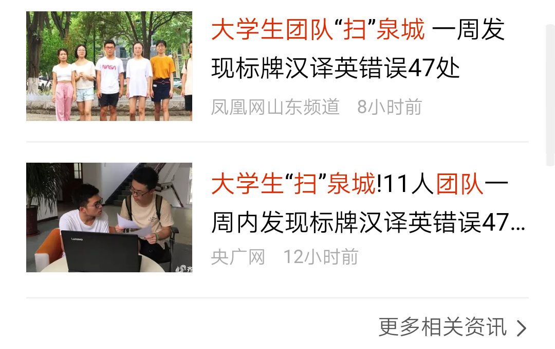 目前,“啄木鸟小队”已经联系到“天下第一泉”景区管理处,对环城景区收集到的问题进行反应;同时也反馈给了山东美术馆,相关负责人也已经针对错误标牌进行上报工作。此外,小组成员与《近报》,《齐鲁晚报》联系协商,争取扩大双语标识问题的影响力,号召广大市民关注此类问题,为泉城济南的文化建设出一份力。