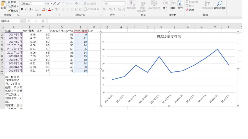 从数据中我们可以看出,济南的空气质量一直处于74个主要城市的最后二十名,有时甚至跌落到倒数前十,大气环境治理应该引起足够的重视。同时,也要看到这些年济南空气质量排名的稳步上升,充分总结经验,坚持改善环境。这次的数据搜集整理活动为环境治理的调研活动提供了满满的“干货”,也充分锻炼了小组成员对于数据进行判断取舍和综合分析的能力。