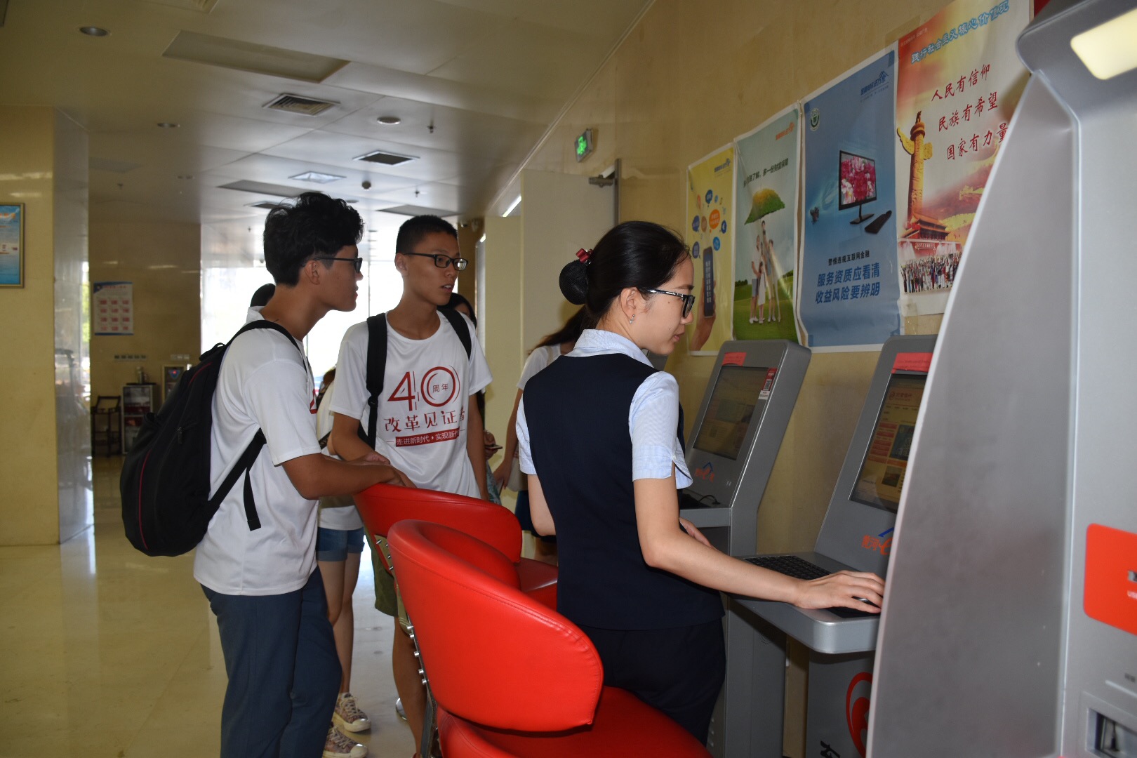 参观结束后,实践团来到营业大厅开始采访,队员们首先采访了营业室业务操作员王珏,作为一名拥有6年工龄的老员工,王珏对于公司发展和银行业从业现状有很深的体会。采访中队员们了解到,近年来科技发展对银行业产生了巨大影响,新技术在开始引进银行时受众面很小,但随着时代发展现在客户普遍更倾向于智能业务,东营银行也紧跟时代步伐,引进了网银体验机和智能柜台机,推广智能化服务。此后队员们又针对银行从业环境、员工培训机制等问题进行了采访。