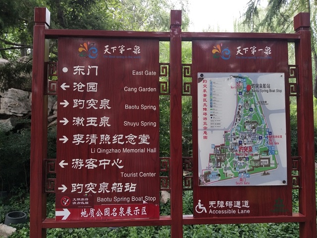 (济南著名景区趵突泉指示牌之一)