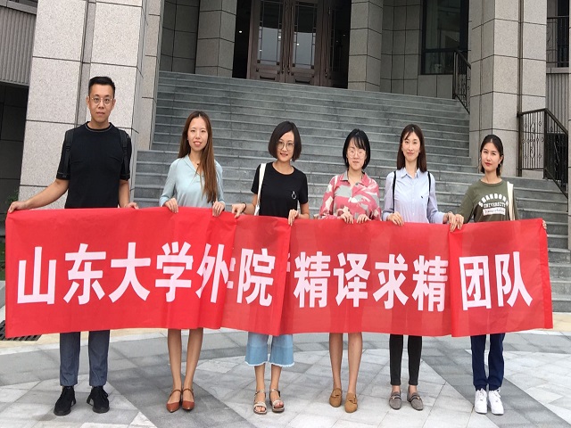 (“精译求精”团队成员于山东省人民政府外事办公室外合影)