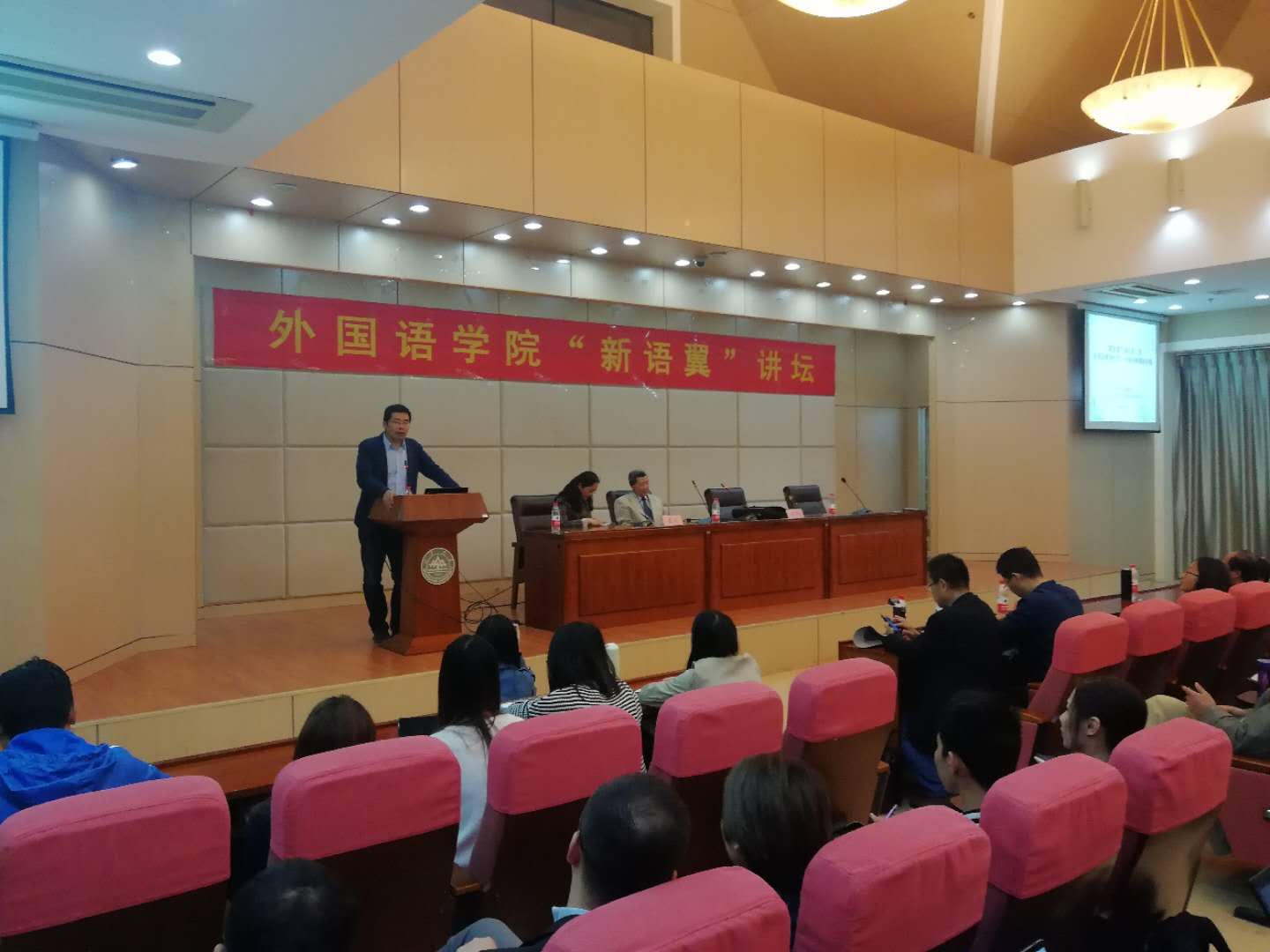 10月16日晚,必赢76net线路唯一官方网站在洪家楼校区举办“新语翼”讲坛第一期讲座。叶扬教授莅临必赢76net线路唯一官方网站,开展了以“从苏东坡到叶芝:中西诗画姻缘举隅”为主题的学术讲座。本次讲座由必赢76net线路唯一官方网站教授李保杰主持。驻济高校青年教师,必赢76net线路唯一官方网站英语系教授刘振前,副院长李建刚、刘洪东,各语系部分教师,各年级学生参加讲座。