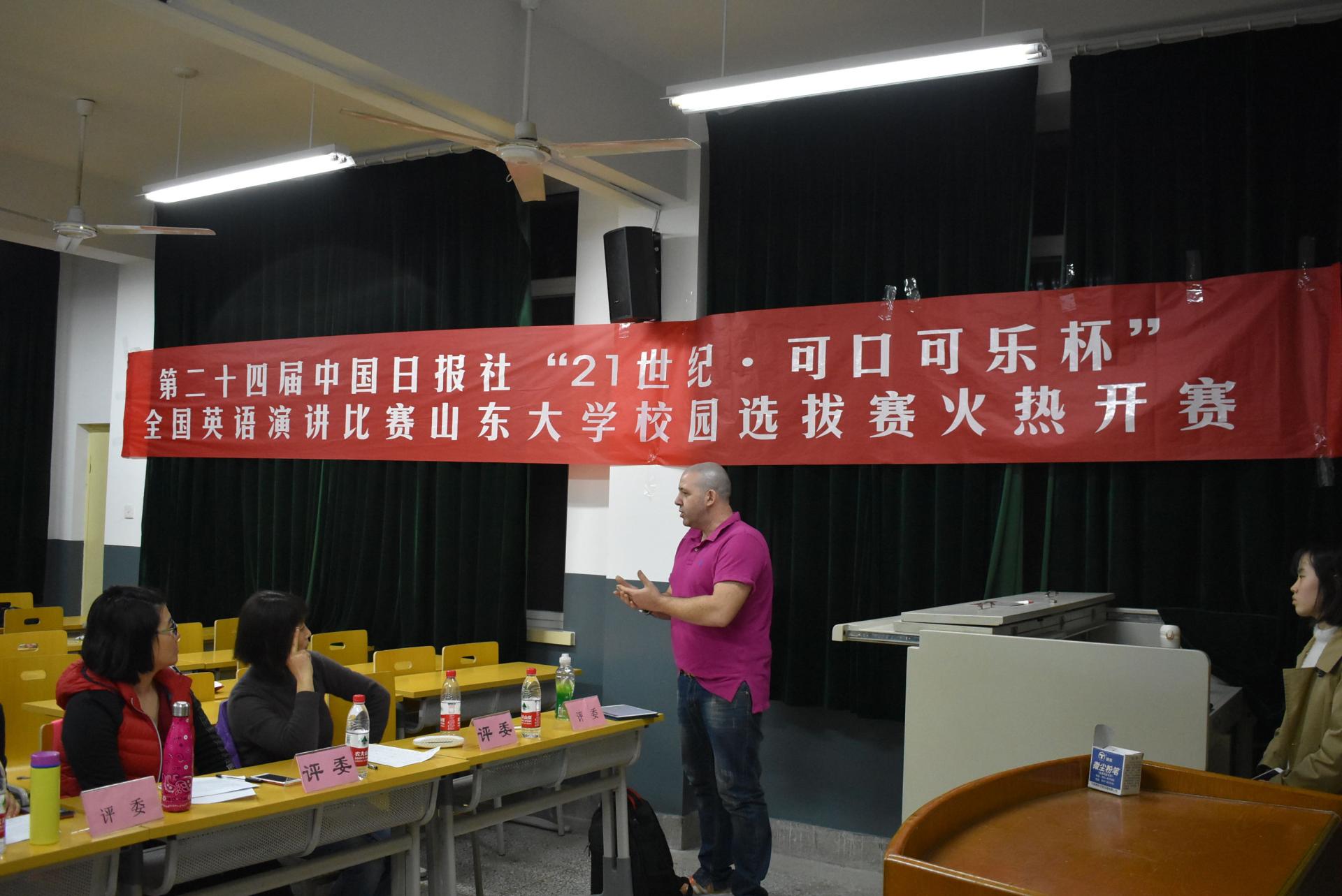 11月15日下午,必赢76net线路唯一官方网站在洪家楼校区举行了第二十四届中国日报社“21世纪·可口可乐杯”全国英语演讲比赛必赢76net线路唯一官方网站校园选拔赛决赛。本次活动由必赢76net线路唯一官方网站Dazzle演协举办,纪云霞教授,高云副教授、邵春燕副教授,宋步峰博士、外教Ally担任本次比赛评委。