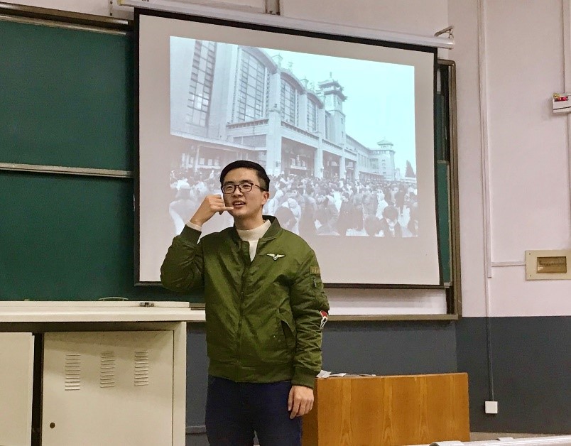 随后是17德语团支部带来的情景剧《车站》。本剧以车站作为背景,以主人公李爱国的一生作为故事主线,以每10年为一个场景,把改革开放40年来人们物质生活上的变化与社会的发展变迁浓缩于其中,令人不得不感叹国家社会发展的速度是如此之快。