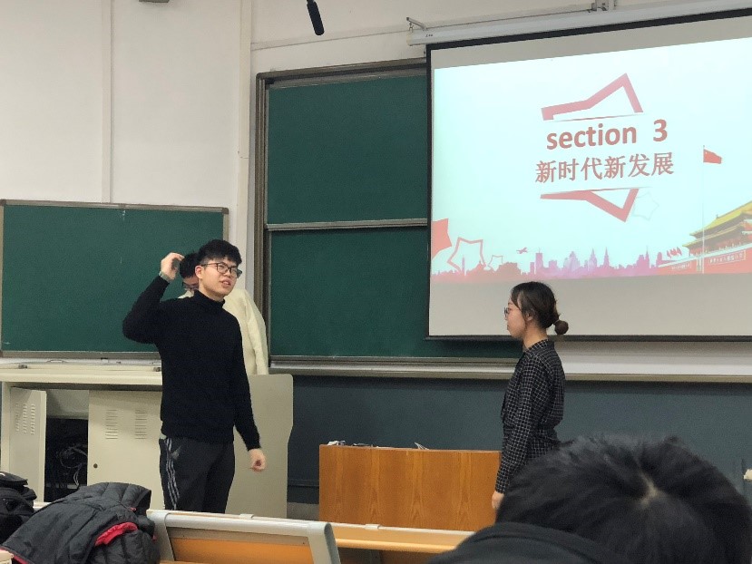 最后是由17国际经济与贸易团支部书记张旭主演的情景剧《四十年变革》。本剧以张家一家发展为主线,展现了这40年间大大小小方面的变化,从衣食住行到土地改革、企业改革,再到新旧思想的碰撞,鲜活地再现了社会发展的情形。