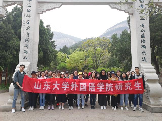 上午九点同学们准时从洪家楼校区出发,车上大家兴趣盎然,欢笑声不断。贴心的大巴车将同学们送到山脚下,可以看到,山上风景秀丽,山脚下古色故乡的建筑处处阐释着禅意。由此,大家自由行动,同学们开始三五成群地开始了登山之旅。登山如人生,重在过程。路上随处可见的小凉亭可供游客歇脚,还有自行组成的乐队大爷们演奏。林间舒缓的音乐荡涤着一个个繁忙的心灵,人们尽情地享受着这久违的静谧。“人间四月芳菲尽,山寺桃花始盛开。”山上桃花、丁香、连翘等竞相开放,花香伴随着微风散满山间。开元寺遗址、禅茶别院、悟德斋等各具特色,山顶的大佛头更是“佛慧”的代表。有的同学们自带食物,开始了山间野餐。大家精神十足,登上山顶,并参观了大佛头。沿途中,为防体力不支,研究生会秘书处的同学也是贴心地为同学们备上了巧克力。下山后,大家在路口处合影留念,完满结束了登山之旅。