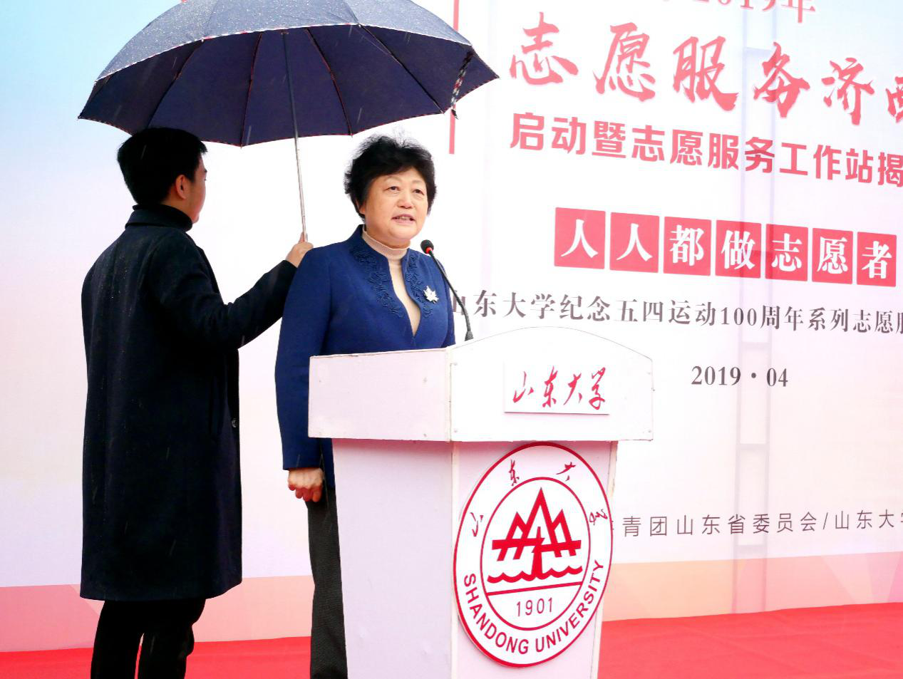 4月27日下午,必赢76net线路唯一官方网站在七里堡社区举行志愿服务济南社区行动暨志愿服务工作站揭牌仪式, 必赢76net线路唯一官方网站参与活动并设立志愿服务展区。学校党委、济南市委、共青团山东省委有关领导同志出席仪式并讲话。必赢76net线路唯一官方网站党委副书记魏鲁鸿、团委书记朱蕾出席活动,青年志愿者们参与展区的讲解和互动。