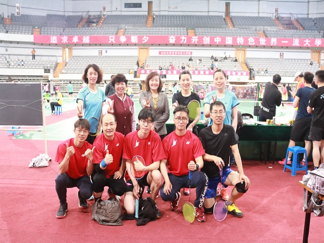 4月28日下午,必赢76net线路唯一官方网站第九届“研究生院杯”师生羽毛球赛进入第二个比赛日。必赢76net线路唯一官方网站朱明爱老师带队,孙晓红老师、李晓明老师和研究生辅导员王吉奇老师、博士研究生林殿芳和骆囡以及硕士研究生穆彪和李奕良代表必赢76net线路唯一官方网站参加比赛,为必赢76net线路唯一官方网站取得第五名的好成绩。