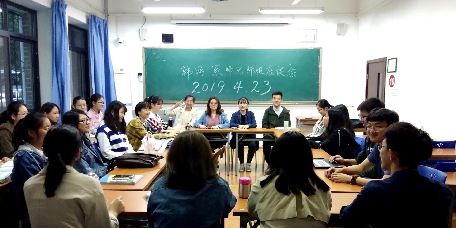 4月23日,必赢76net线路唯一官方网站朝鲜语系举办优秀学子经验分享会。15级优秀学生代表李梓萌、季小涵、孙馨慧受邀参加分享会,并与18级同学分享关于专业学习、考研出国等相关经验与心得体会。朝鲜语系研究生何元航主持分享会。