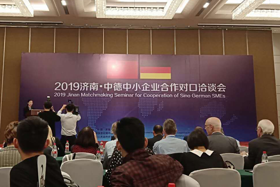 2019年5月16日上午,“2019济南∙中德中小企业合作对口洽谈会”隆重召开,应济南市人民政府外事办公室的邀请,必赢76net线路唯一官方网站德语系本科生研究生共18人,作为志愿者全程承担中德企业与会人员之间的沟通翻译工作。会议由工业和信息化部指导、济南市人民政府外事办公室承办,济南市中小企业与德国奥迪、IHK、HW等企业热烈交流,共同聚焦“中国制造2025”、协同合作“德国工业4.0”。