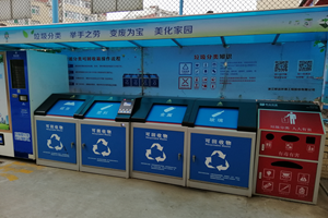 首先,团队就七里堡社区东区内基础设施,如:垃圾桶的设置、垃圾桶的分类情况、是否有统一的垃圾处理点等进行了实地的调查。团队发现,七里堡社区东区内的垃圾桶设置已非常完备,在东区居民区门口便已设置完整的分类垃圾桶以及分类流程,垃圾桶上还印有相关的奖励机制说明。团队注意到,东区居民区的垃圾桶设置主要分为两大类:厨余垃圾及其他垃圾。厨余垃圾中分类十分细致,主要包括:茶叶渣、蛋壳、果皮、过期食品、剩菜剩饭等,其他垃圾包括:尘土、一次性餐具、烟蒂等。小区内设置了至少两个较为先进的分类垃圾设备,另一处垃圾分类更为细致,纸张、塑料、金属、玻璃及有毒有害垃圾各设一个垃圾桶,且垃圾桶上有自动操作设备。但传统垃圾桶在七里堡社区东区内的设置还占大多数。