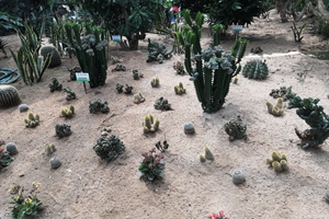 调研小组首先参观了沙漠植物及热带雨林景观展示区。该展区整体一分为二,东西两部分分别为沙漠植物和热带雨林两种不同的景观。据场馆工作人员介绍,此展区通过调解馆内的温度及湿度,分别模拟出两种不同的环境。在此展区中,小组成员了解到了沙漠植物及热带雨林植物的生长环境,同时也认识到了,我国在栽培培养植物科技之先进。