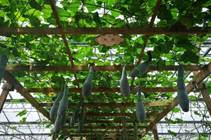 最后,小组成员来到了蔬菜廊架园艺及乡村振兴题材艺术景观展区。据工作人员介绍,该展区选择800多种蔬菜,采用20余种不同形式的园艺廊架,进行实地种植。实践队成员在观赏廊架园艺、立体种植的同时,也了解到了“寿光模式”的创新及“寿光蔬菜”的魅力。