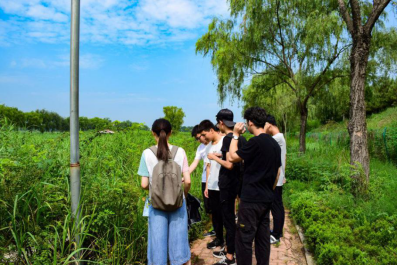 午饭过后,小队成员继续在汶河湿地公园边进行调研。