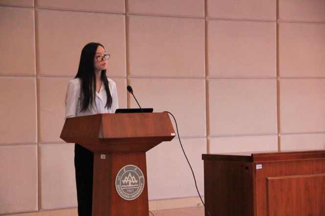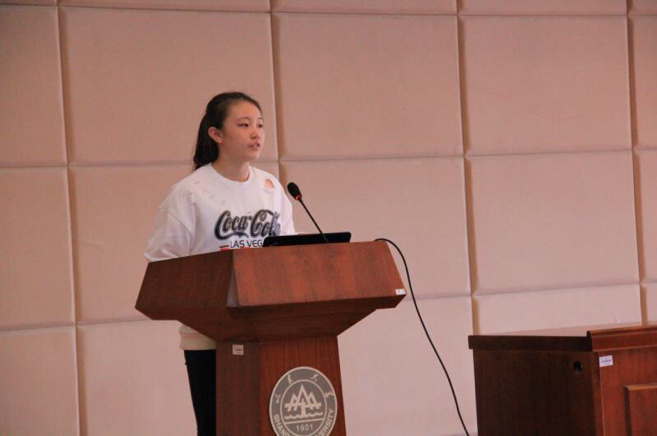 随后,田雨晴介绍了外交礼仪方面的知识。她从“为什么要学习外交礼仪、外交礼仪的内容、外交礼仪的通则以及外交礼仪的意义” 四个方面深入阐释了外交礼仪方面的规范知识。