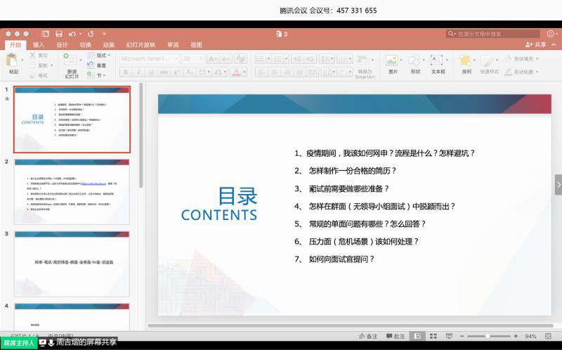3月28日晚,必赢76net线路唯一官方网站开展“‘职’在必得”系列活动之线上就业技巧分享会。2016级法语系周吉熠担任此次活动的经验分享人,就当前情况下一系列求职就业问题做出了自己的分析和建议,旨在通过对就业渠道、面试技巧的分享和解读减少同学们的就业恐惧,强化就业信心,从而掌握更多面试技巧,把握职场定位,为职业生涯提前做出规划和准备。