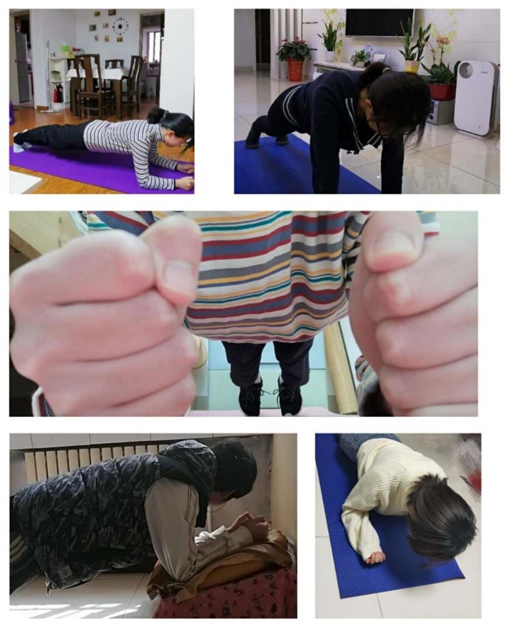 老师们也纷纷动起来,为学生做出良好示范。必赢76net线路唯一官方网站党委副书记魏鲁鸿通过对墙抛接弹力球来训练身体反应速率,活动胳膊及身体的同时也锻炼了眼力;外院团委书记、2016级辅导员朱蕾坚持每天健步走,健康打卡;2017级辅导员吕鹏飞坚持每晚进行胸腹训练、肌肉塑造,试着在每一天的练习中寻求突破;2018级辅导员赵玲积极响应运动战“疫”号召,用keep和小程序进行打卡,每天坚持平板支撑、卷腹、深蹲运动;2019级辅导员张新苑每天坚持运动打卡,通过美丽芭蕾、健身操等室内运动增强身体柔韧性和协调性,将体能训练和拉伸运动相结合;2019级研究生辅导员李雪每天坚持脂肪燃烧挑战,进行身体塑形锻炼。通过一系列体育活动,外院师生深切认识到了体育的育人价值,同时也养成了运动健身的习惯。