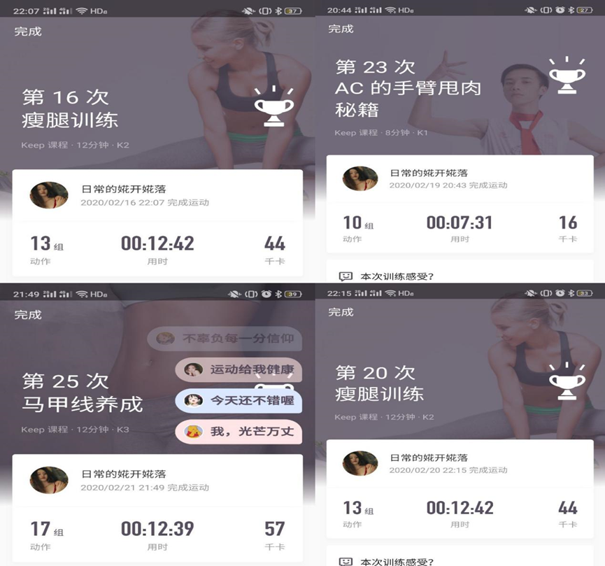 学生们积极响应号召,以班级为单位开展身体素质训练。寒假期间,考虑到同学们由于春节饮食过量以及受疫情影响不能出门,2019级翻译班依托运动软件Keep, 秉持全面发展原则,以“在家不止学习和玩耍,还有远方的Keep打卡”为口号,展开了寒假居家体育锻炼打卡活动;2019级法语班建立了班级健身打卡群,互相交流运动感悟;2019级日语班、韩语班的同学们在本班级群中分享了自己运动时的精彩瞬间,既锻炼了身体,又增进了同学之间的感情。2016级、2017级、2018级各班同学也自行制定自我运动计划,每日进行体育锻炼。