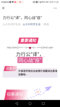 “公译战疫”平台充分立足必赢76net线路唯一官方网站“为天下储人才,为国家图富强”的办学宗旨,发挥必赢76net线路唯一官方网站的特色,以外语技能为基,充分发挥外院的学科优势,实现了专业特长与志愿服务的高度融合统一,双向促进,推动公益助人与个人成长的完美契合。公译平台以外语类志愿为主要方向,精准满足疫情期间外语翻译需求,汇集大量的志愿者,在体现鲜明的外语人才特色的同时弘扬山大办学特色、彰显山大青年品格,助力抗疫行动。平台预计在疫情结束后将作为常设公益平台,为社会各界继续提供公益性翻译服务。