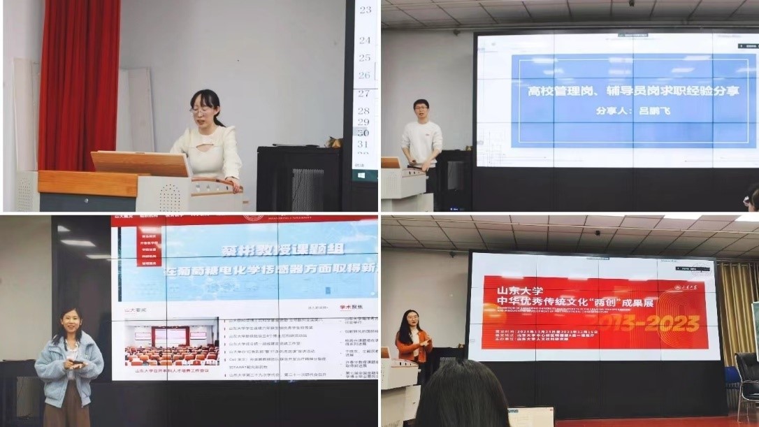 吕鹏飞、徐卓群、刘亚文三位毕业生表达了对母校和学院的感谢之情,并依次就个人经历、岗位认知、信息渠道、备考策略、考试技巧等为同学们作经验分享。吕鹏飞结合自身学生工作心得,重点剖析、综合对比了高校辅导员岗与管理岗的职责内容与备考倾向,鼓励同学们树立远大理想,珍惜宝贵校园时光,找准方向、提前准备、厚积薄发。徐卓群向与会同学分享了在毕业论文撰写与就业过程中的心路历程,鼓励同学们树立乐观向上的良好心态,以踏实肯干的姿态克服焦虑、积极探索。刘亚文通过自身实习经历与备考经验,向同学们明确了做好职业生涯规划的重要性,鼓励同学们合理利用在校时间,不断开拓眼界,更好地认识自己、认知世界,在日积月累中不断提升综合素质。互动环节中,三位嘉宾结合自身经历同与会同学交流探讨,为同学们答疑解惑。