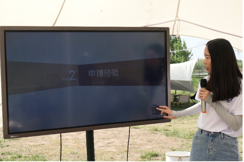 李宁宁从个人简介、申博经验以及论文撰写投稿等方面进行了分享。她首先介绍了自己的教育经历、论文发表、参会情况以及获奖情况,让在座同学对申请博士的学术背景有了初步的了解。随后,李宁宁提醒大家,申请博士前需要确自己的动机和原因,她将申请博士的时间线划分为前期的学术积累、中期的材料准备和后期的笔试面试,并依次为在座同学讲解。接着,李宁宁分享了论文撰写和发表的心得,从论文的查找、论文的阅读记录、论文的修改调整、论文写作的辅助工具、论文投稿等各个方面为在座同学传授了宝贵的经验。